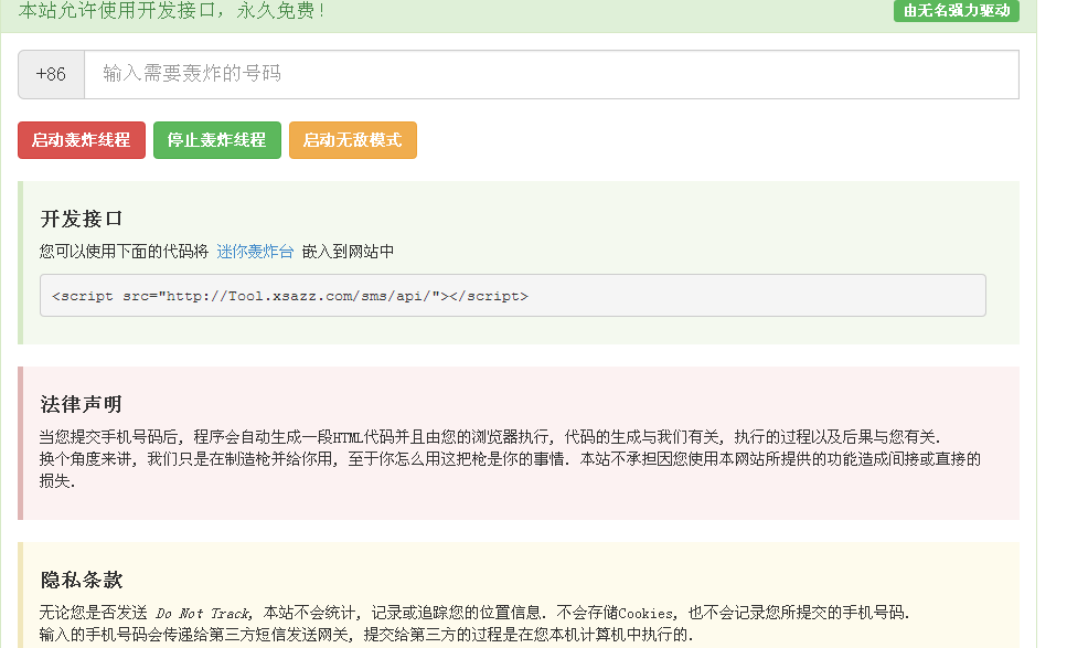 【空间源码】(需密访问)无名迷你无敌短信轰炸平台源码