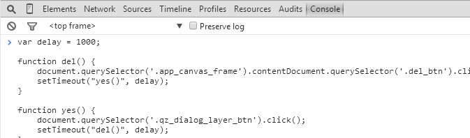 复制上面代码 本代码可以自动删1000条说说,如果要改多条,请替换文中delay=1000文本